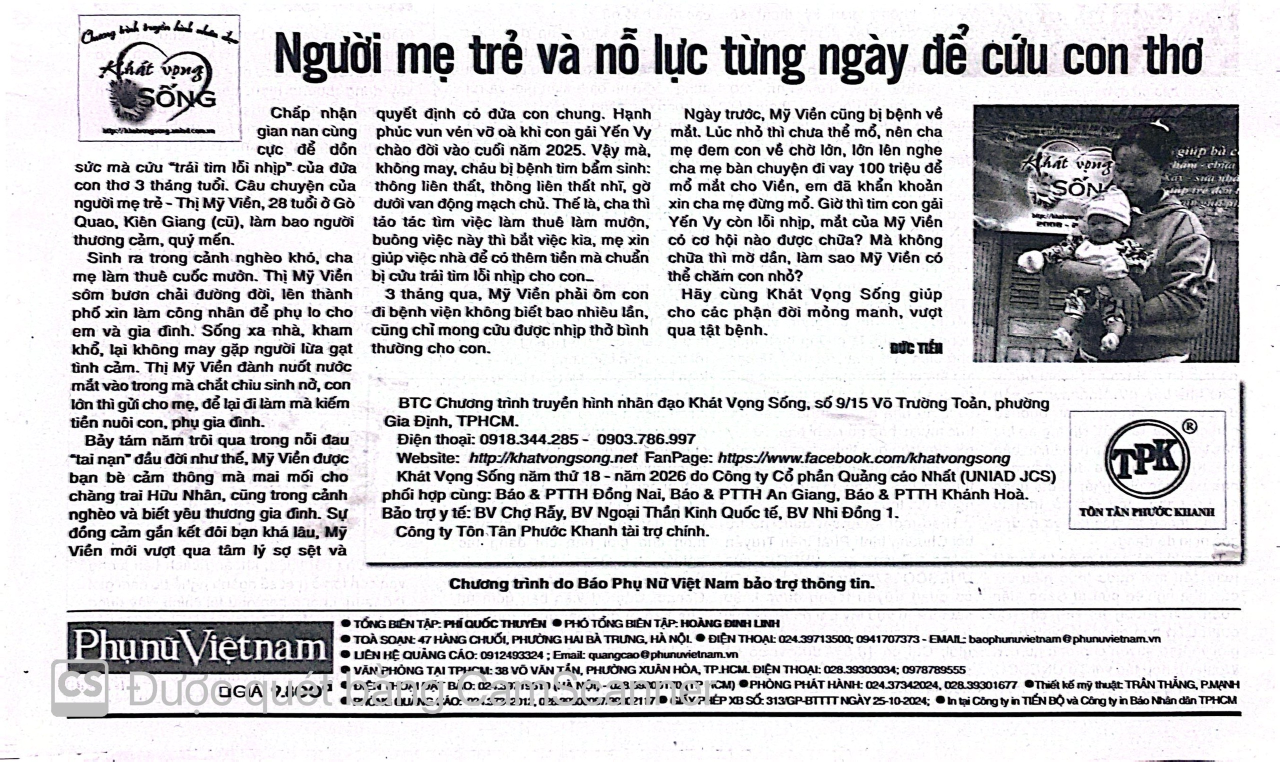 Người mẹ trẻ và nỗ lực từng ngày để cứu con thơ